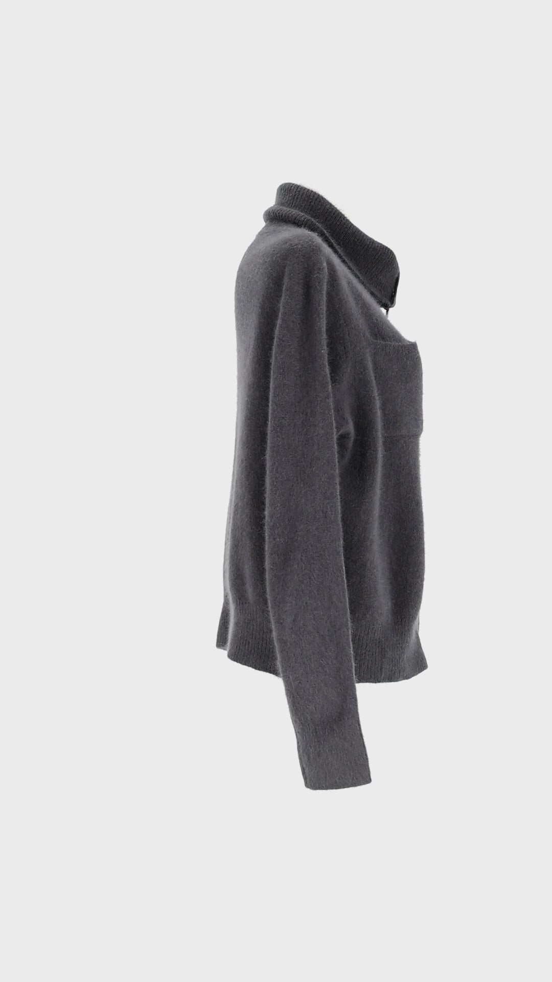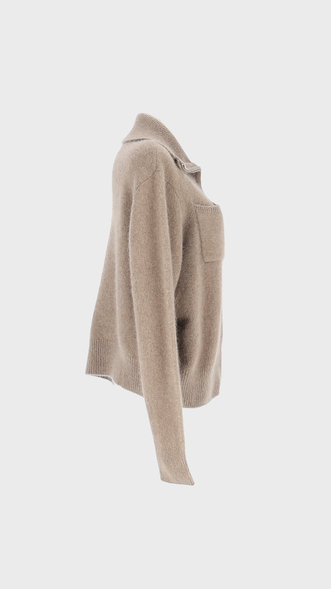 Kašmyro megztinis su užtrauktukų detalėmis. Ypatybės: itin minkštas audinys, užtrauktukų pagalba dėvimas skirtingais būdais.