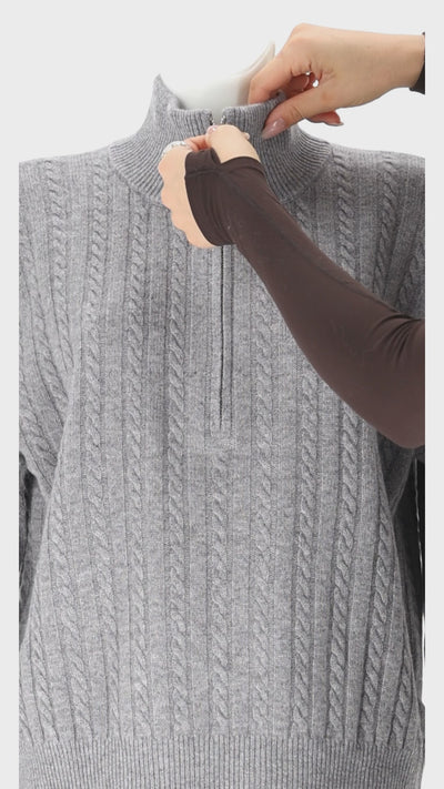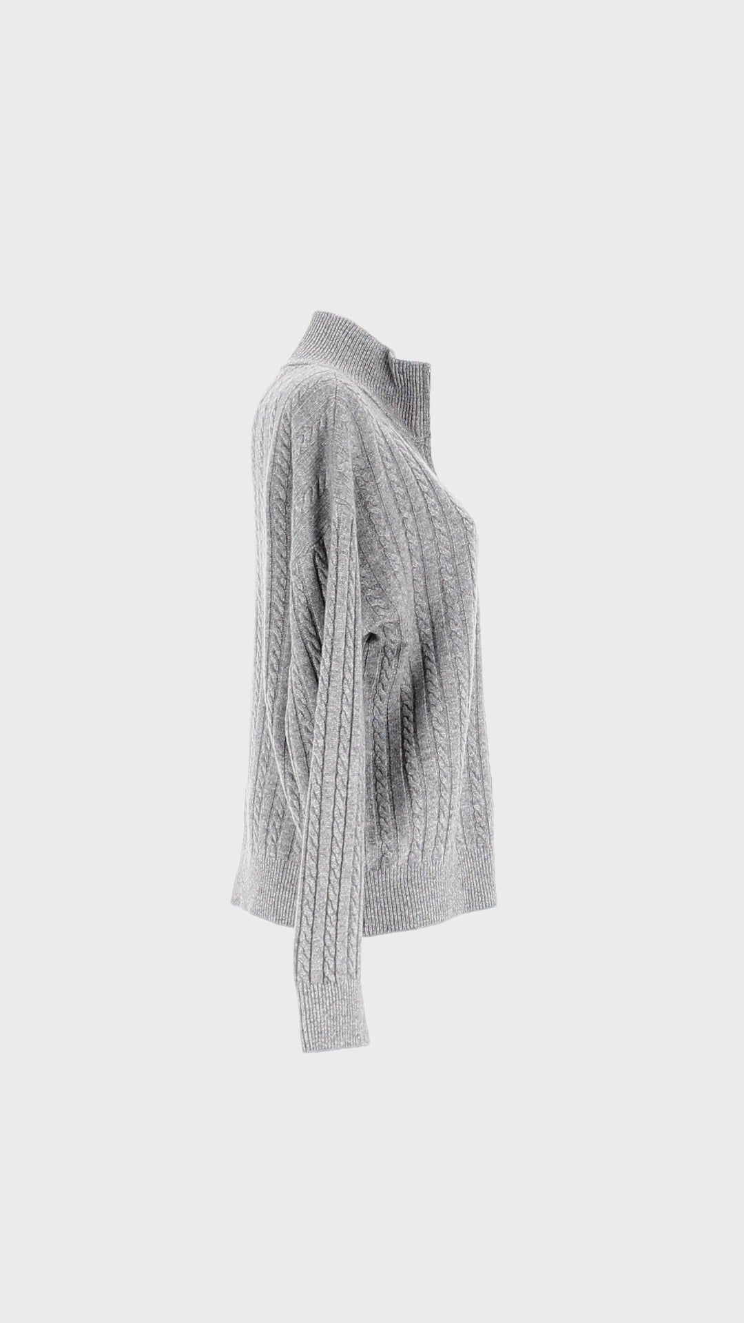 Ypatybės: pusinis užtrauktukas, aukšta apykaklė, pynimo raštas, ilgos rankovės, patogus siluetas.